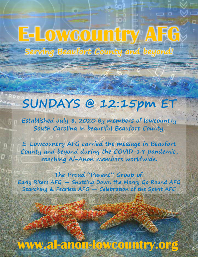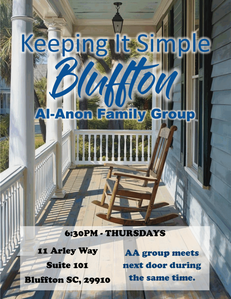 Al-Anon Beaufort County serves all of the groups within Beaufort, Bluffton, Okatie and Hilton Head Island as well as provides resources to some worldwide electronic meetings that were started by or supported by local members.